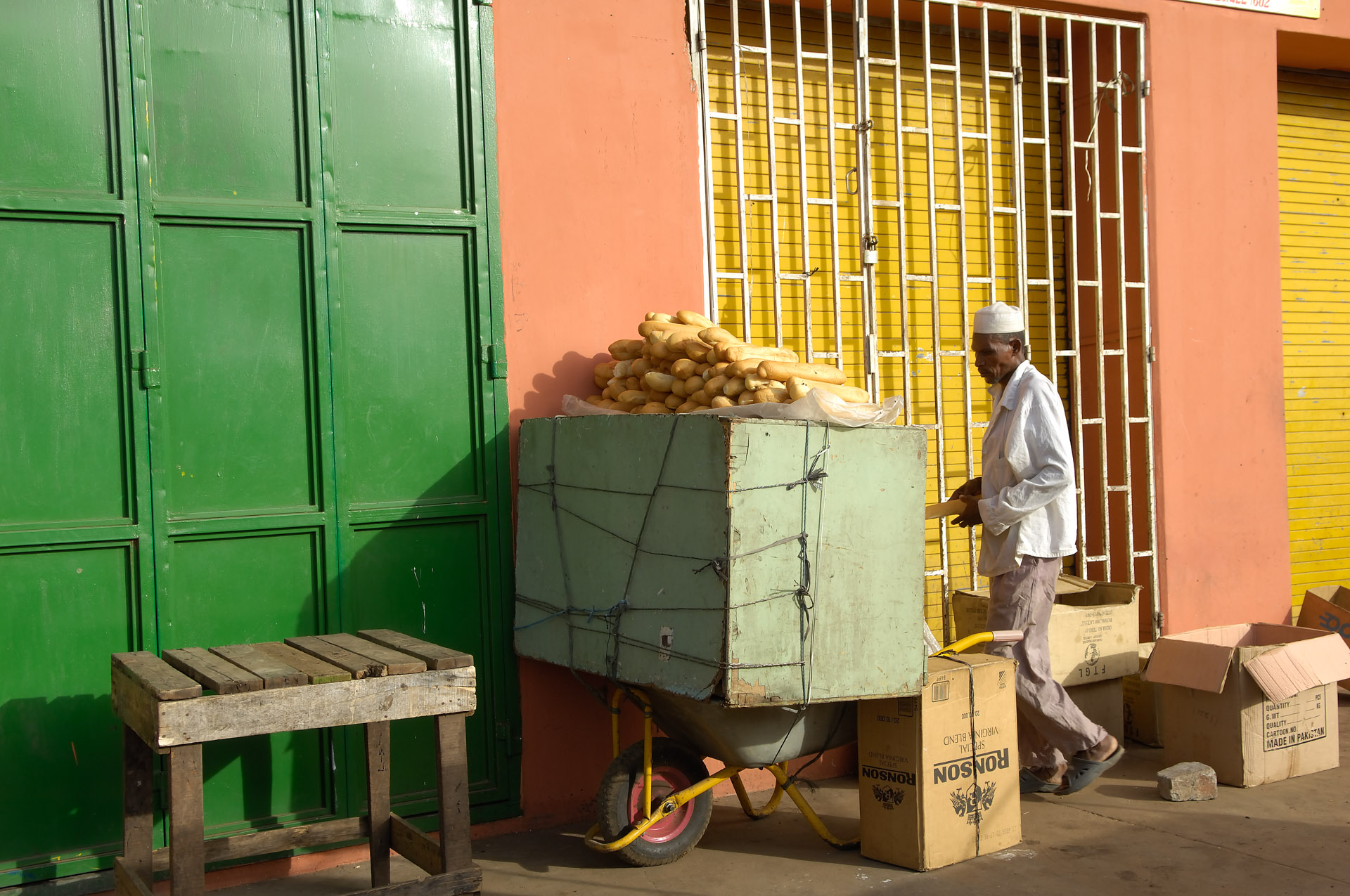 GAMBIA. BANJUL. Parada de venta de pan junto a la terminal del ferry.